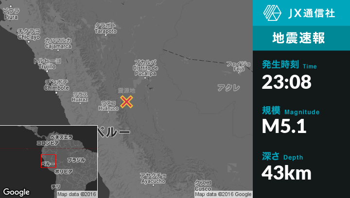 | 震源地 | ペルーのTingo Mariaから東64kmの地点 |