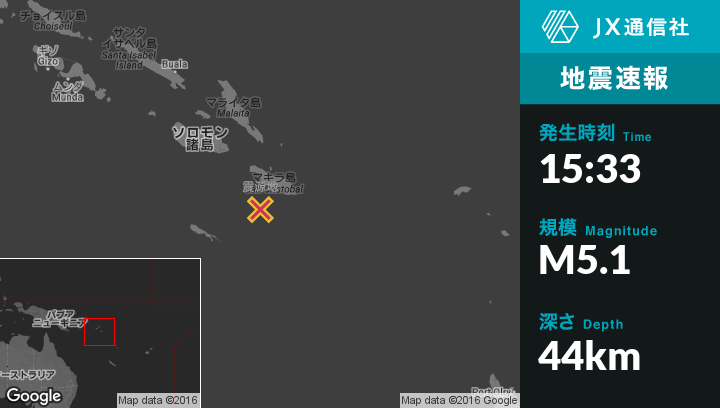 | 震源地 | ソロモン諸島のKirakiraから南西78kmの地点 |