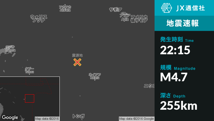 | 震源地 | トンガのNeiafuから北西205kmの地点 |