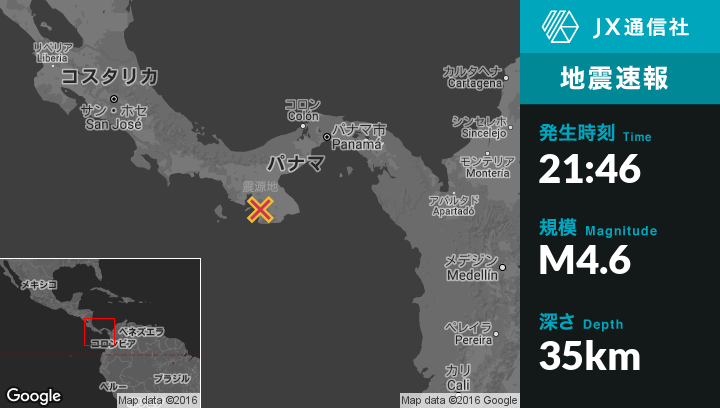 | 震源地 | パナマのLas Minasから南西21kmの地点 |