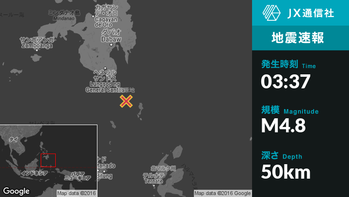 | 震源地 | フィリピンのSaranganiから南東103kmの地点 |