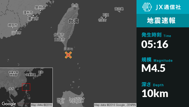 | 震源地 | 台湾のHengchunから南南東57kmの地点 |