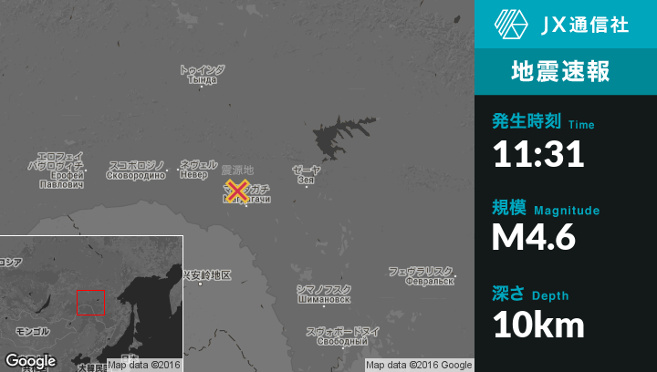 | 震源地 | ロシアのMagdagachiから北北西35kmの地点 |