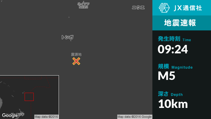 | 震源地 | トンガの`Ohonuaから南南東159kmの地点 |
