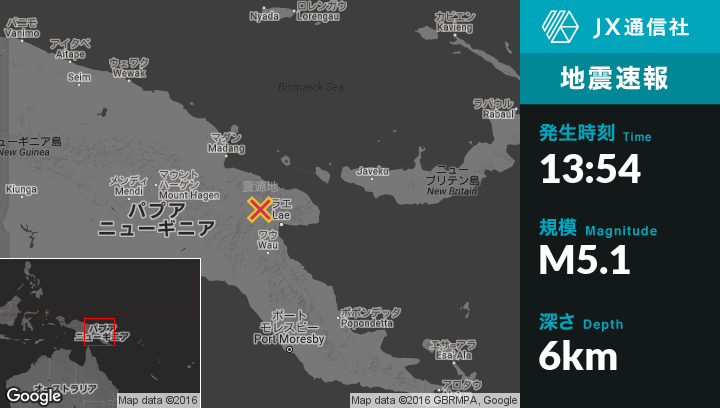 | 震源地 | パプア ニューギニア独立国のLaeから北西70kmの地点 |