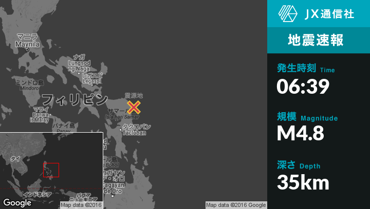 | 震源地 | フィリピンのAluganから北北東12kmの地点 |