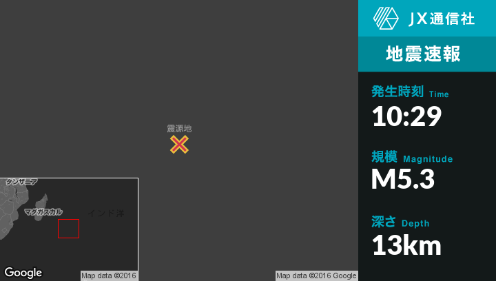 | 震源地 | レユニオン島のSaint-Philippeから南南東1012kmの地点 |