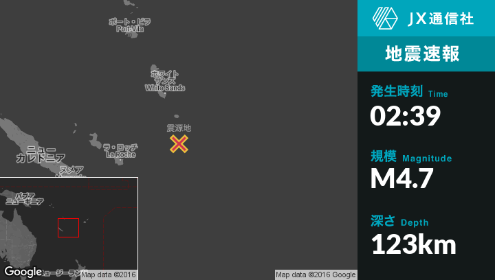 | 震源地 | バヌアツのIsangelから南南東164kmの地点 |