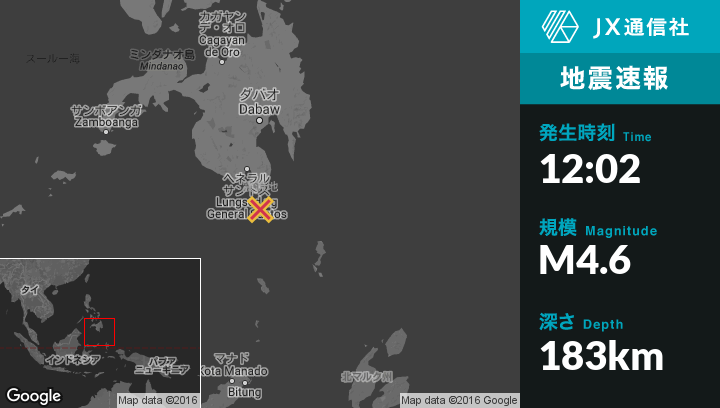 | 震源地 | フィリピンのSaranganiから南5kmの地点 |