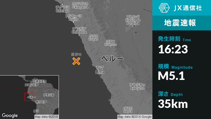 | 震源地 | ペルーのParamongaから西南西109kmの地点 |