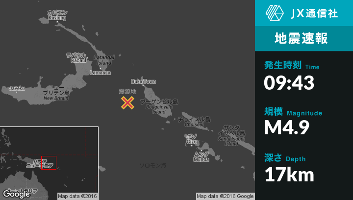 | 震源地 | パプア ニューギニア独立国のPangunaから西171kmの地点 |