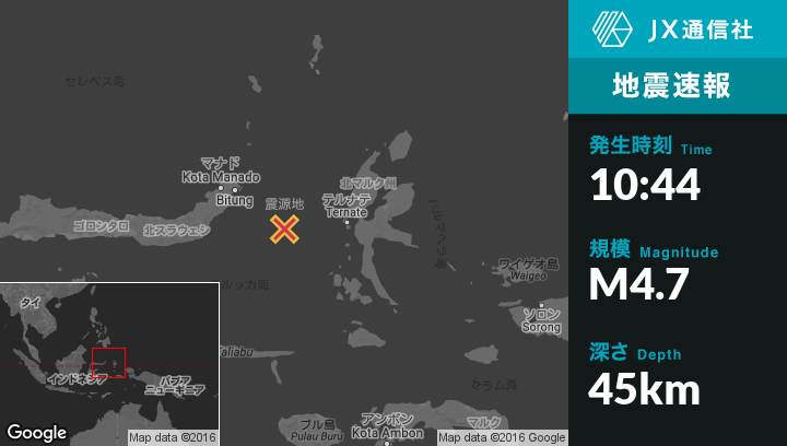 | 震源地 | インドネシアのBitungから南東129kmの地点 |