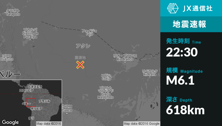 | 震源地 | ブラジルのTarauacaから南208kmの地点 |