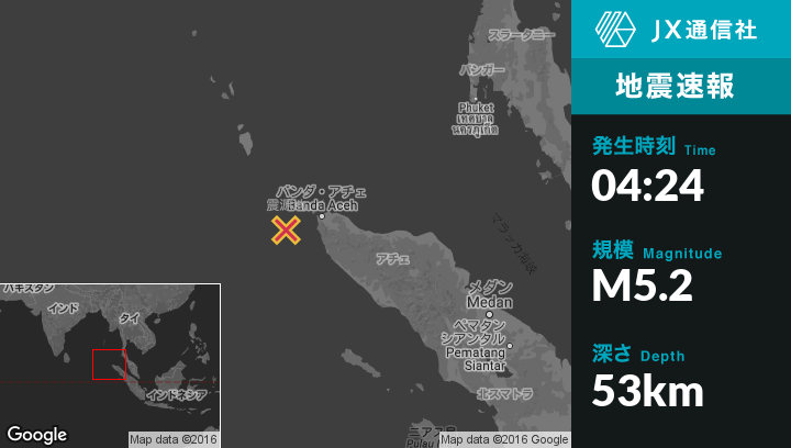 | 震源地 | インドネシアのBanda Acehから西南西82kmの地点 |