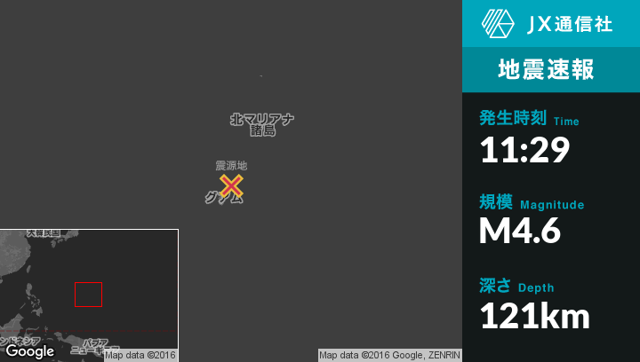 12月19日 11:29頃、グアムのYigo Villageから北北東35kmの地点でM4.6の地震がありました。