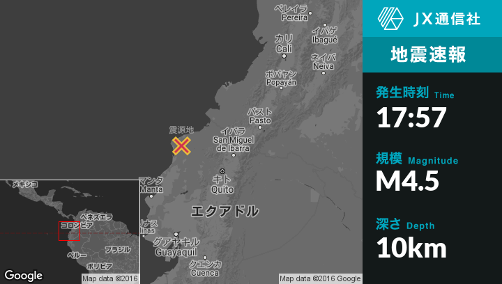 | 震源地 | エクアドルのPropiciaから南南西21kmの地点 |