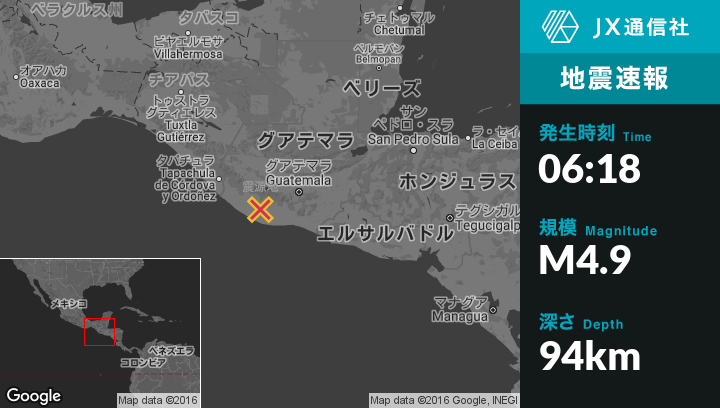 | 震源地 | グアテマラのRio Bravoから西南西6kmの地点 |
