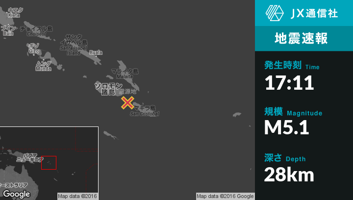 | 震源地 | ソロモン諸島のKirakiraから西北西104kmの地点 |