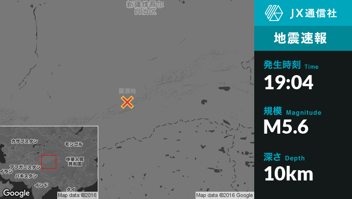 12月20日 19:04頃、中国のQiemoから南南西119kmの地点でM5.6の地震がありました。