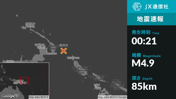 | 震源地 | パプア ニューギニア独立国のTaronから東85kmの地点 |