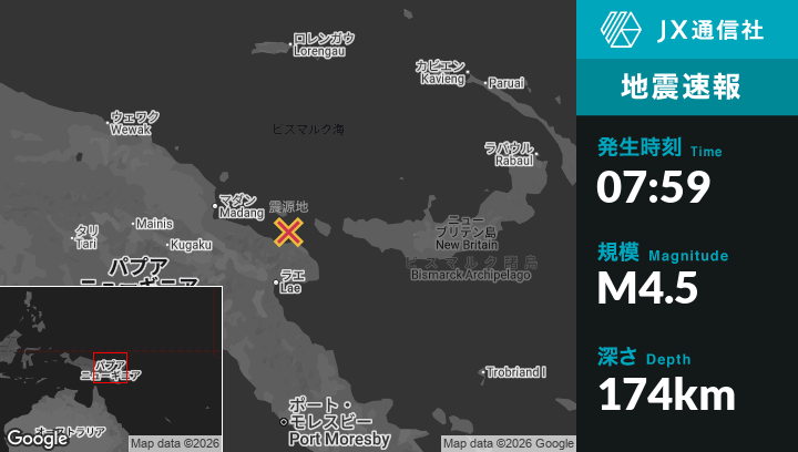 | 震源地 | パプアニューギニアのFinschhafenから北北西123kmの地点 |