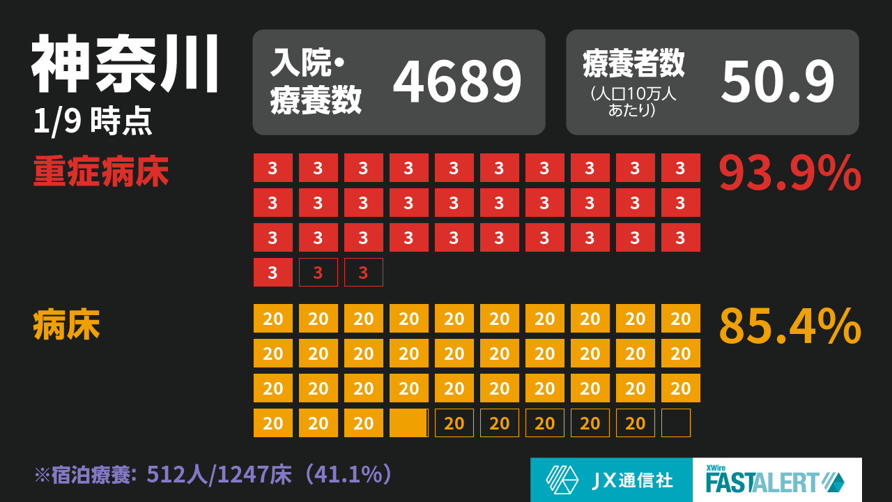 新型コロナ 神奈川県の病床使用率86.4% 重症病床は残り6床に(9日時点)