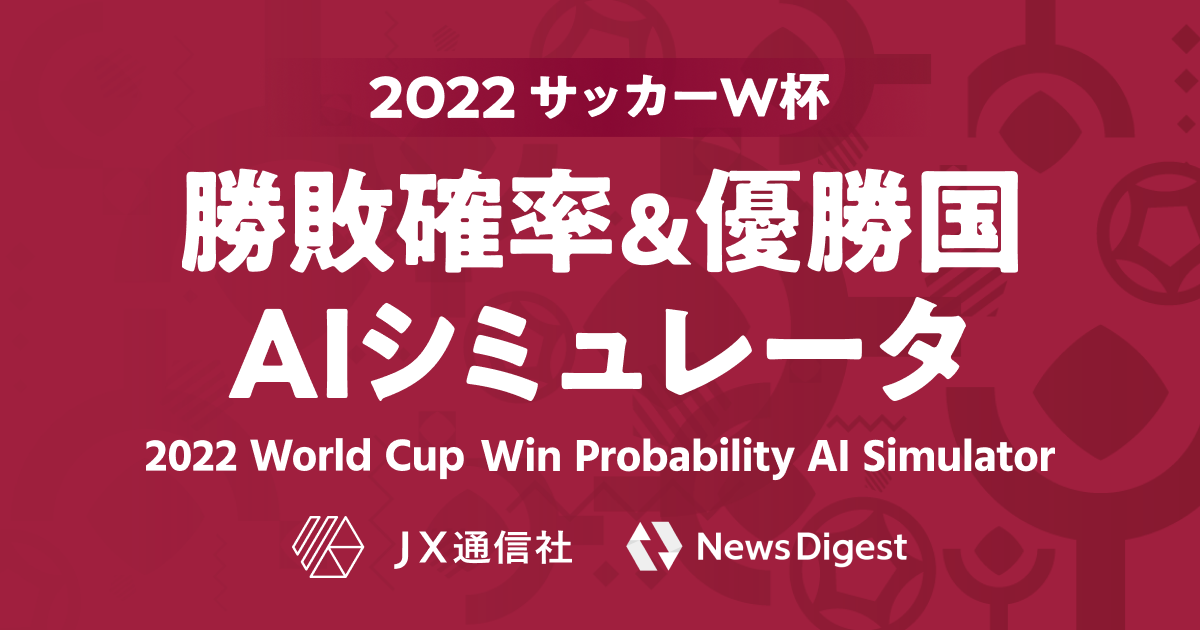 NewsDigestを運営するJX通信社は、11月20日(日)からカタールで開催されるサッカーワールドカップにあわせ、「2022サッカーW杯 勝敗確率&優勝国AIシミュレータ」をリリースしました。