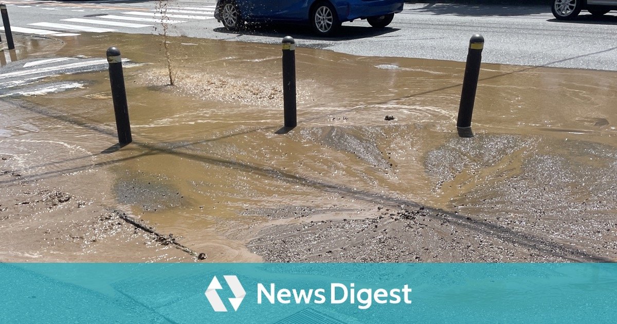 19日11時34分頃、川崎市多摩区生田2丁目の府中街道で「路上で濁った水が噴き出ています」と119番通報があった。